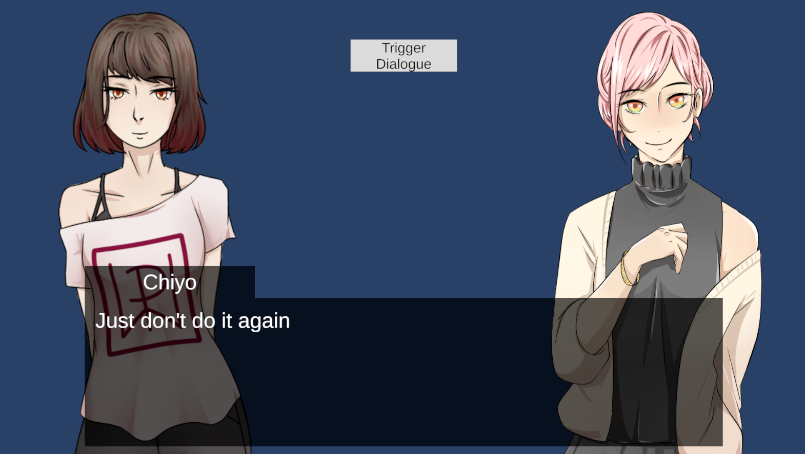 Thank you for trying my dialogue system! It's my first time creating an assets. I'm creating this dialogue system for fun, so feel free to use or improve it however you like!